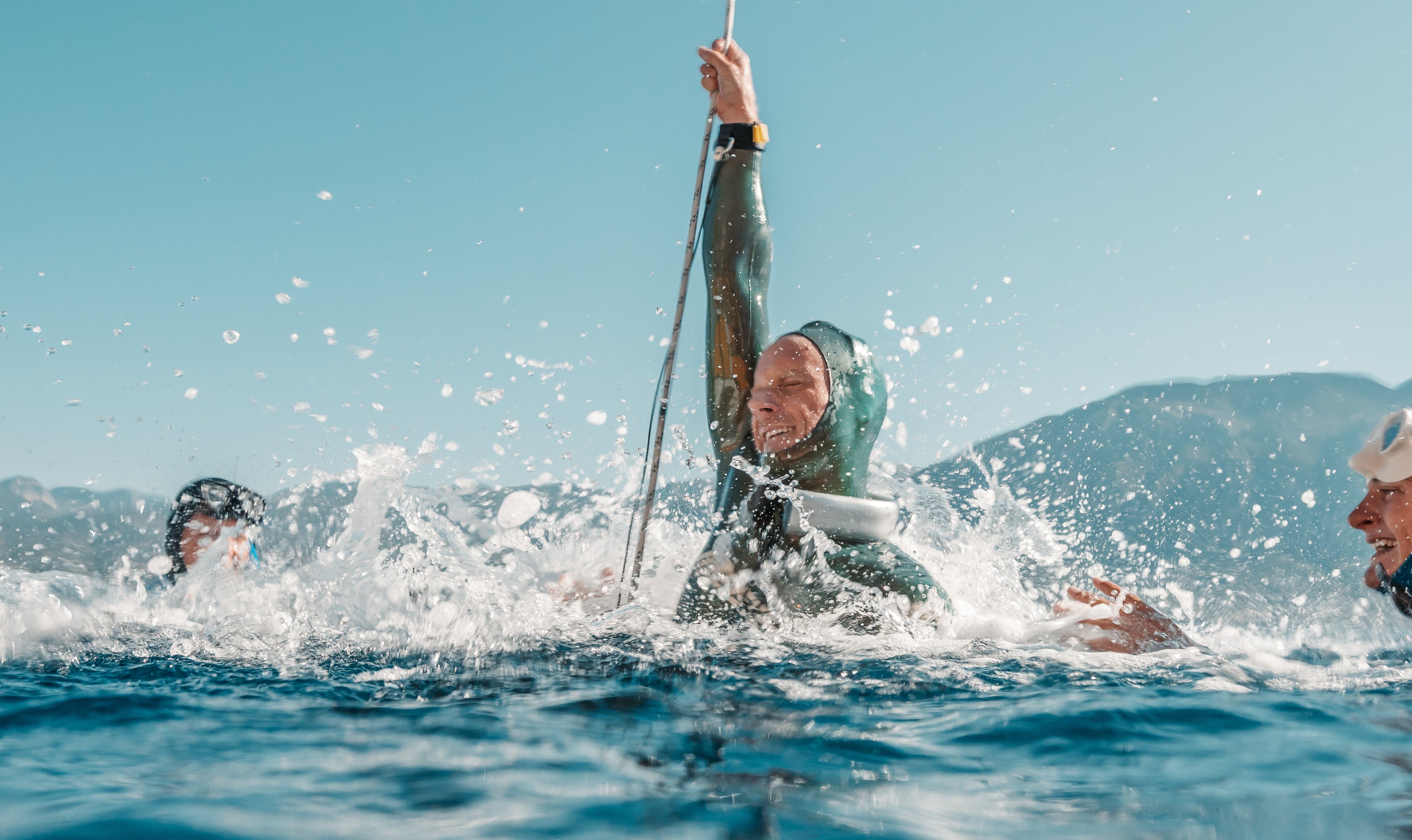 Over the years, Giankos has taught hundreds of people to freedive, including Arksen founder Jasper Smith and his family, and he says one of the most challenging parts of the job is not getting people to feel the freedom, but having to stop them from progressing too fast.