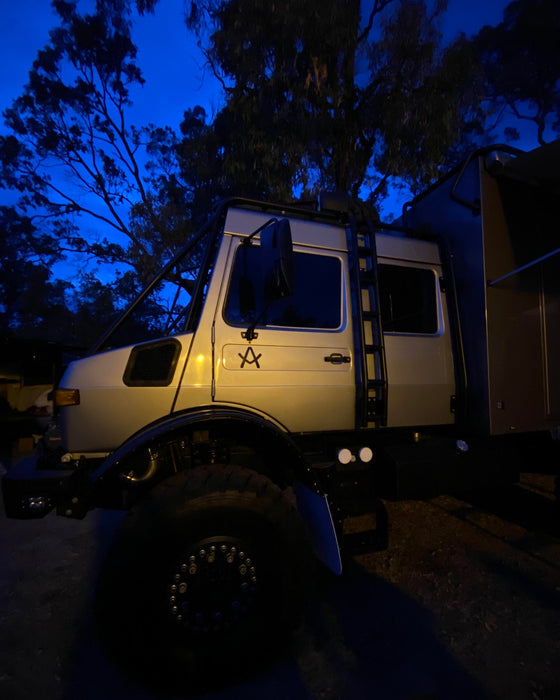 With an 8-speed forward/reverse manual gearbox, selectable drive modes, and high-speed crown wheel and pinion upgrade, it conquers diverse terrains. The upgraded suspension, 100 AMP 24V alternator, integrated tire inflation system, and dual 260L fuel tanks ensure a seamless blend of power and endurance. Front and rear Runva 20,000lb winches and a dedicated Unimog recovery kit make Project Everest the epitome of off-road readiness.