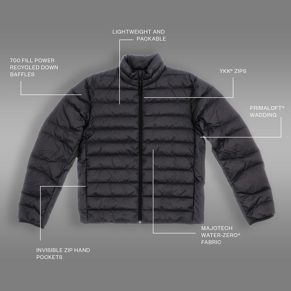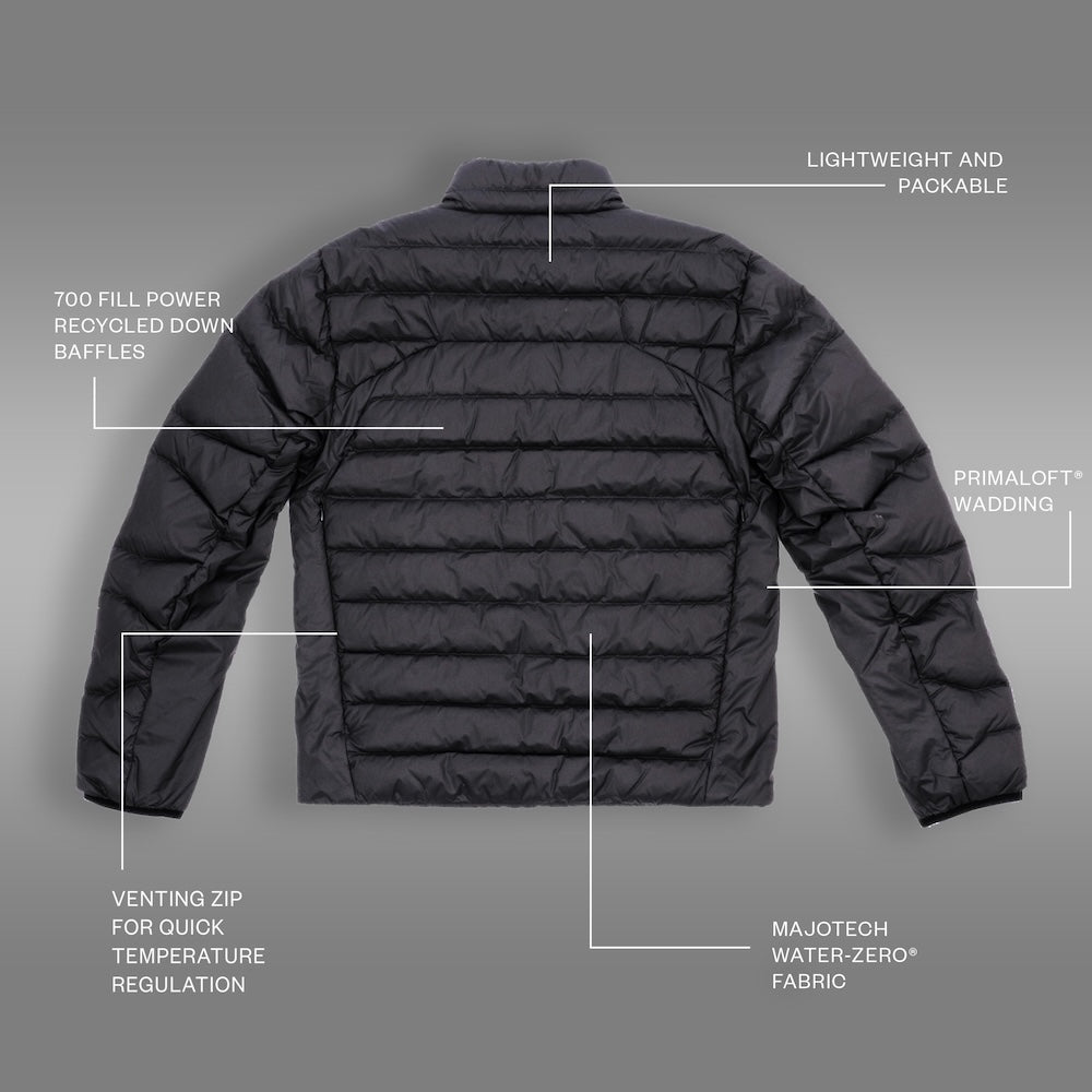 Maximum insulation with wind resistance, sustainable recycled down fill. |
