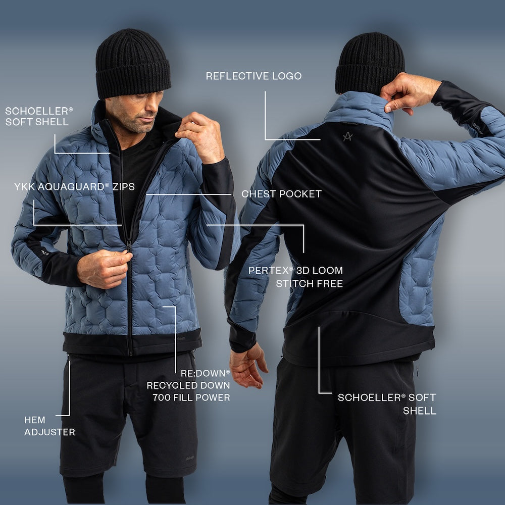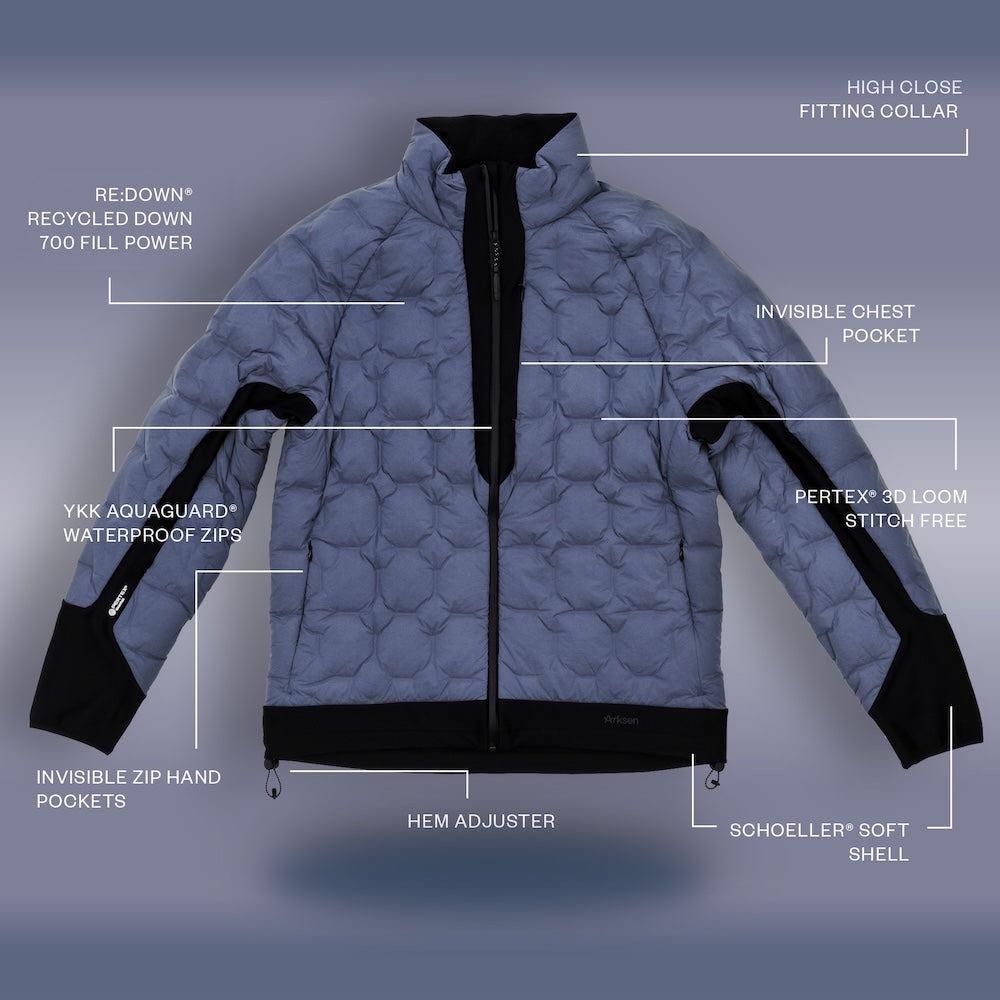 Engineered for harsher environments, the Lentus uses the same advanced Pertex® shell as the Triton but is filled with Re:Down recycled down for maximum insulation, with a Scholler sofr shell back panel for ease of movement during high activity. Storm-ready, highly durable, and responsibly made.