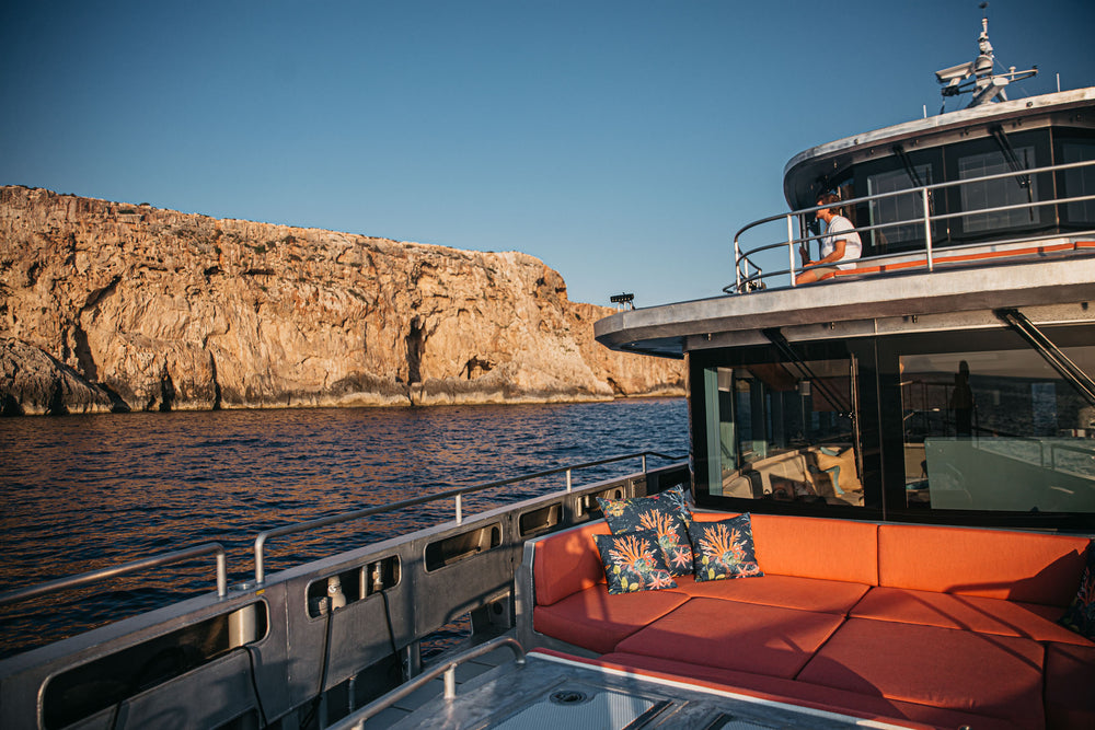 Fin is the flagship of the Arksen fleet – a full hybrid explorer yacht with a transoceanic range of over 7,000 nautical miles. She’s built for endurance, efficiency and comfort in the world’s most remote environments. She offers wraparound views from her glass saloon, a warm and spacious interior, and exceptional autonomy at sea - but she is more than a yacht, she is your floating basecamp – equipped for diving, kayaking, photography, and exploring hard-to-reach coastlines with ease and confidence.