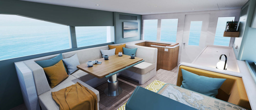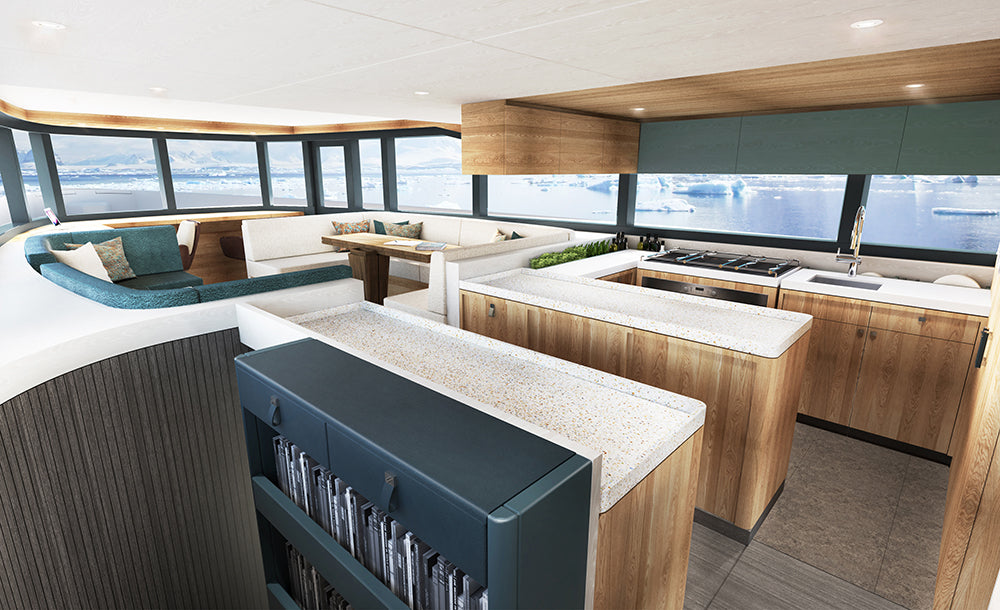One of the first things that strikes you when you step onboard any Arksen explorer vessel is the un-interrupted sight-lines throughout the saloon. The main deck offers fantastic viewing of the surroundings, as with the upper deck, the joinery and layout has been designed to create minimal visual clutter and allow a connection to nature throughout the length of the boat.