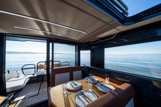 With a carefully planned dinette, plus dining options both inside and out, why not stay on board and enjoy a meal with family and friends? The best view on any coast is usually from the water in any case.