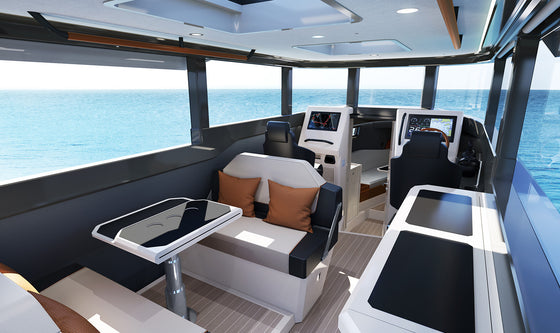 The Arksen 45 provides a safe and comfortable ride in some of the world’s more challenging locations. The enclosed pilothouse features suspension seats and heating or air-con as needed. The separate forward cabin and full height shower room allow guests to freshen up in privacy after a dive or day at the beach while the spacious, protective main cabin has flexible seating and up to four berths. This allows for overnight adventures, enabling owners and their guests to spend longer in their chosen destinations.