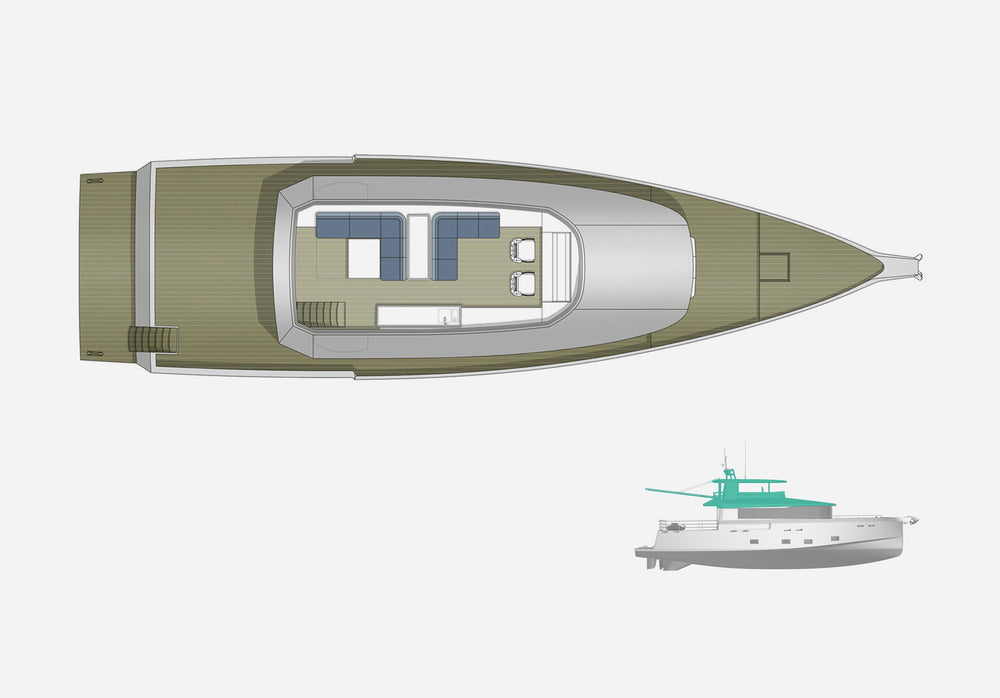 The Arksen 75 offers a number of external options, from an open or closed flybridge, painted hull, choice of alternative timber decks, to various crane options depending on how many toys and equipment you have stored onboard. The large aft deck and ability to place the tenders on the outriggers when at anchor provide a multitude of options and use cases.
