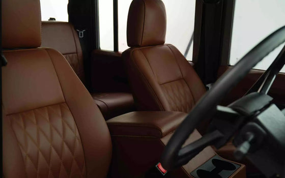 In addition to the mechanical upgrades, all of our D110 builds are finished with a refined interior including new front seats, soundproofing, luxury-trimmed panels and black Alcantara dash. They also include a new centre console, and new clusters, clocks, control switches and power windows.
