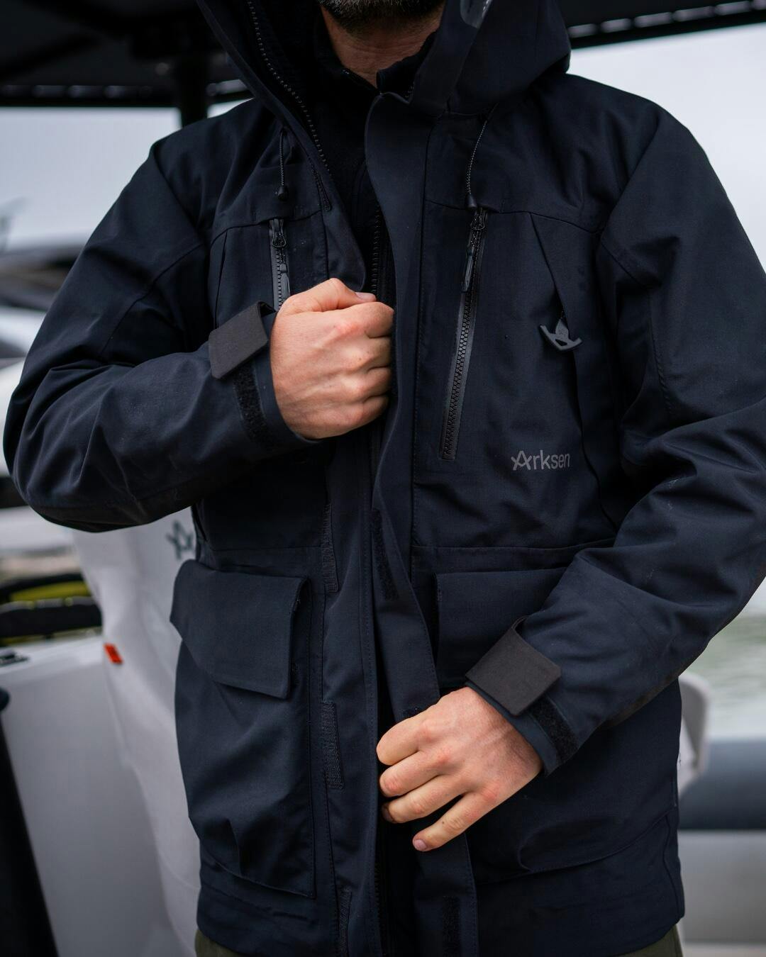 A durable waterproof jacket engineered from a 3-layer shell fabric